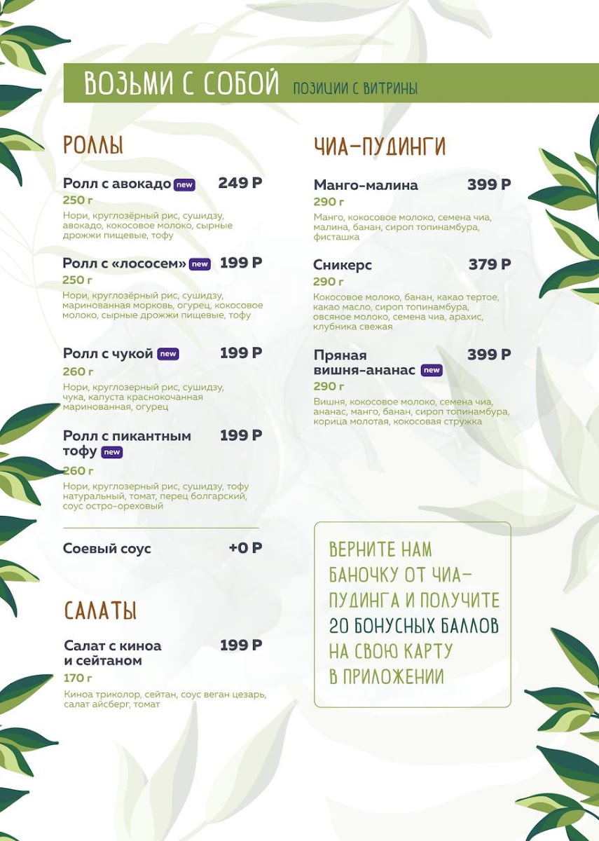 Булочка ржано-пшеничная бездрожжевая, растительная котлета Hi, сырный соус с зеленью, веган сыр чеддер, салат айсберг, цукини, красный лук КБЖУ: 806,05/25,42/49,03/65,49 КБЖУ (в листьях салата): 564,05/19,49/44,33/21,22